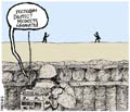 лошадь, которая тащит по бездорожью телегу с огромной ракетой. Он был